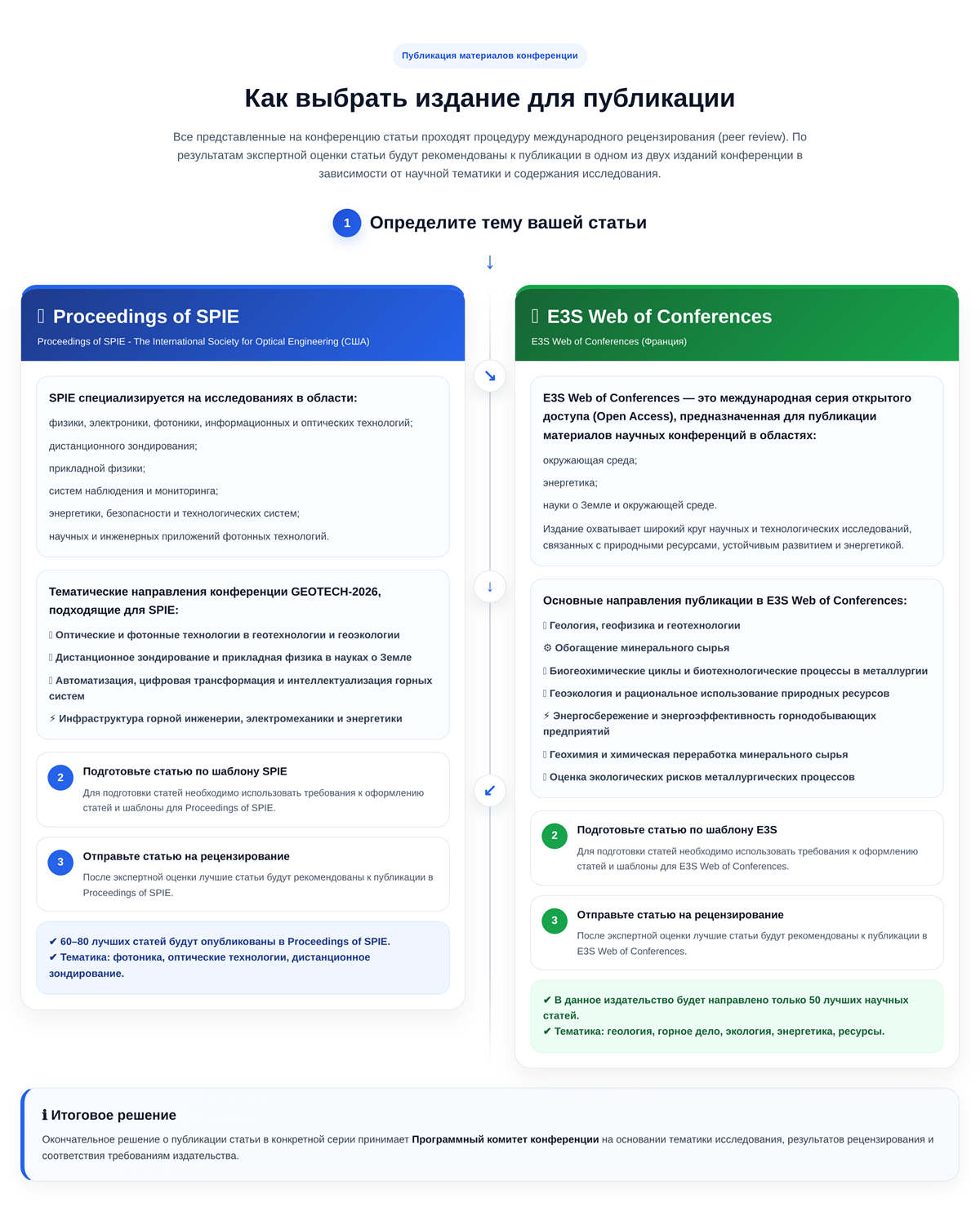 📗 E3S Web of Conferences - публикация до 50 лучших статей, посвящённых исследованиям в областях: