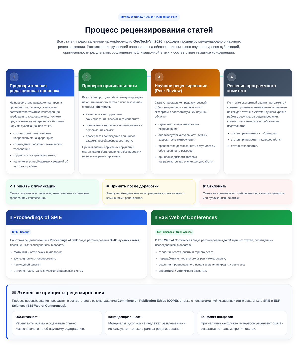 Все статьи, представленные на конференцию GeoTech-VII 2026, проходят процедуру международного научного рецензирования (peer review).