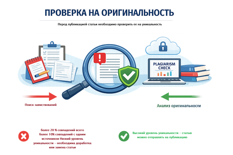 Проверка проводится с целью предотвращения плагиата, самоплагиата, некорректных заимствований, неэтичного использования научных материалов.